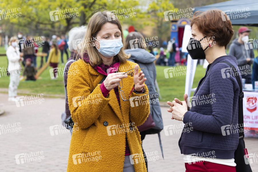 Annekatrin Klepsch und Katja Kipping bei der Maikundgebung der Partei Die Linke auf dem Alaunplatz. Dresden, 01.05.2021