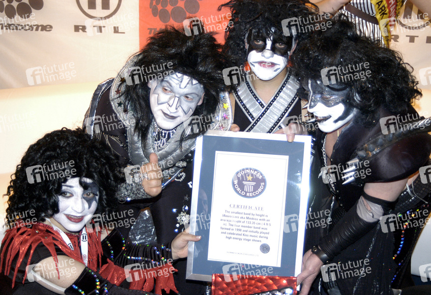 Pressetermin mit den Mini Rockerz zu 'The Dome 42' in der TUI Arena Hannover. Die kleinste Band der Welt schafft mit ihrem Auftritt in Hannover den Eintrag ins Guinness Buch der Rekorde. Die professionelle Messung der vier kleinwüchsigen Rocker findet durch das Guinness-Team bereits einen Tag vor 'The Dome 42' statt