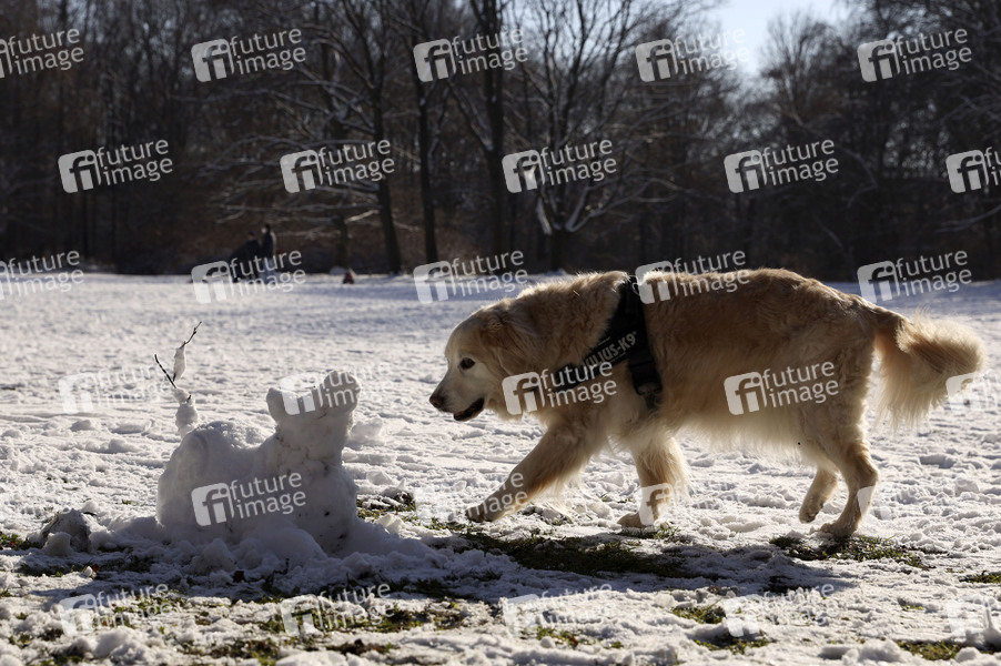 Hund mit Schneehund gesehen beim Winterspaziergang im Großen Tiergarten. Berlin, 31.01.2021