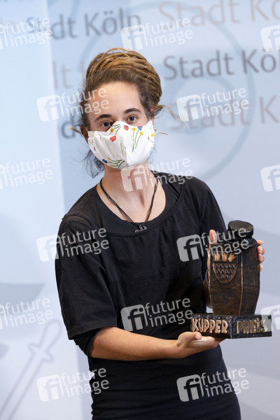 Carola Rackete erhält die mit 10.000 Euro dotierte Auszeichnung für ihr besonderes Engagement in der Flüchtlingshilfe bei der Verleihung des Karl-Küpper-Preises, der dieses Jahr zum 1. mal in Köln an Menschen vergeben wird, die sich für den Schutz der Demokratie und gegen Rassismus, Antisemitismus und jede Form der Diskriminierung engagieren, im Rathaus. Köln, 19.10.2020
