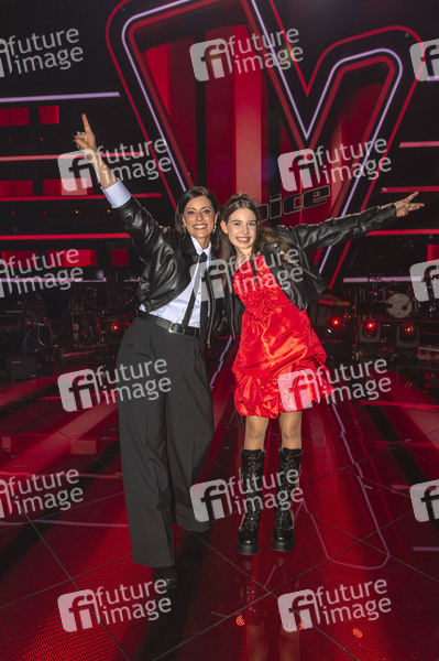 Stefanie Kloß und Arhanna beim Photocall mit den Finalisten und Coaches der 13. Staffel der TV-Show 'The Voice Kids' im Studio H Berlin-Adlershof. Berlin, 18.04.2025