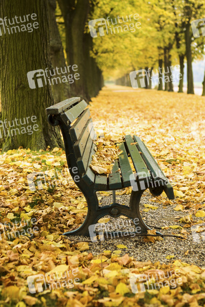 Herbstlaub, dunkle Jahreszeit, dunkle Jahreshälfte, Laub, Blätter, Baum, Bäume, Herbstzeit, Herbstblues, Herbst-Depression, Herbstwetter, Goldener Herbst, Goldener Oktober, herbstlich, herbstliche Temperaturen, herbstliches Wetter, herbstliche Blätter, herbstliche Farben, herbstlich gefärbte Blätter, Herbstspaziergang, Spazieren, Blätter fallen von den Bäumen, Herbstbild, Landschaft, Laubbäume, Herbstblätter, Stadtlaub, bunte Blätter, buntes Laub, Herbstblätter, Wetter, Laubfall, Natur, Bank, Parkbank, Symbolfoto, Symbolbild