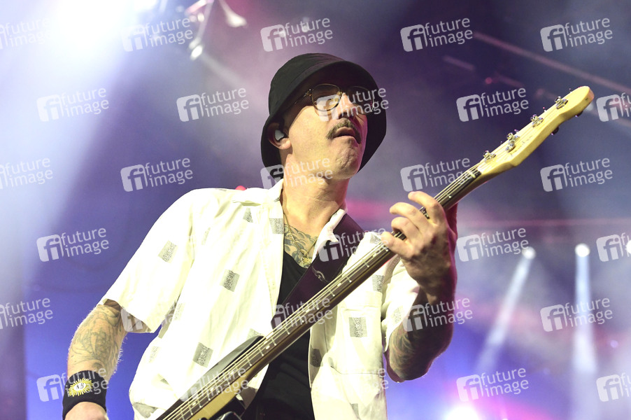 Kaspar Boye Larsen von Volbeat live bei einem Konzert der 'Greatest of all Tours Worldwide' in der ZAG Arena. Hannover, 21.10.2025