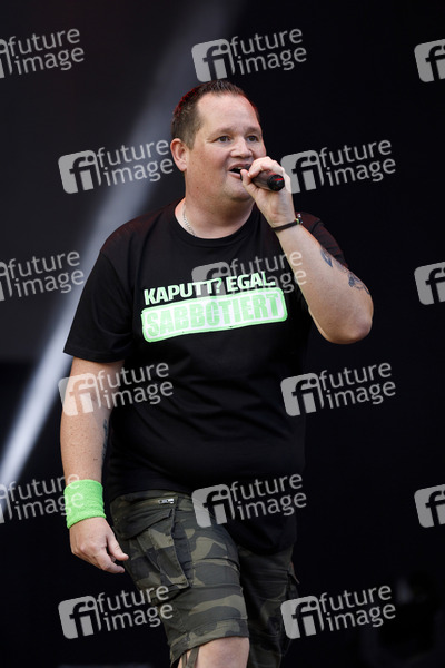 Sabbotage bei seinem Auftritt beim Konzert von Mia Julia im Kulturgarten in der Bonner Rheinaue. Das Bonn Live Kulturgarten Open Air Festival 2020 ist Europas erstes Open Air Festival unter Corona-Auflagen wegen der Covid-19 Pandemie. Bonn, 08.08.2020
