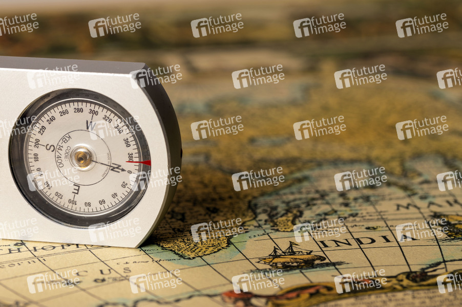 Unter Seefahrt versteht man das Befahren von Ozeanen und Meeren mit Schiffen und Booten. Im Bild ein Kompass auf einer historischen Seekarte. (Symbolfoto, Themenfoto)