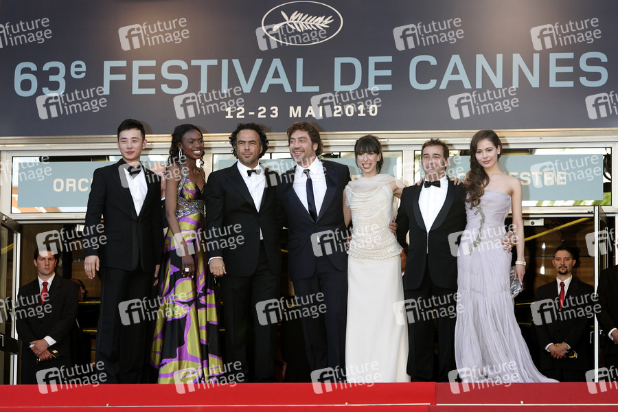 Luo Jin, Diaryatou Daff, Alejandro Gonzalez Inarritu, Javier Bardem, Maricel Alvarez, Eduard Fernandez und Gast bei der Premiere des Kinofilms 'Biutiful' auf dem Festival de Cannes 2010 / 63. Internationale Filmfestspiele von Cannes im Palais des Festivals. Cannes, 17.05.2010