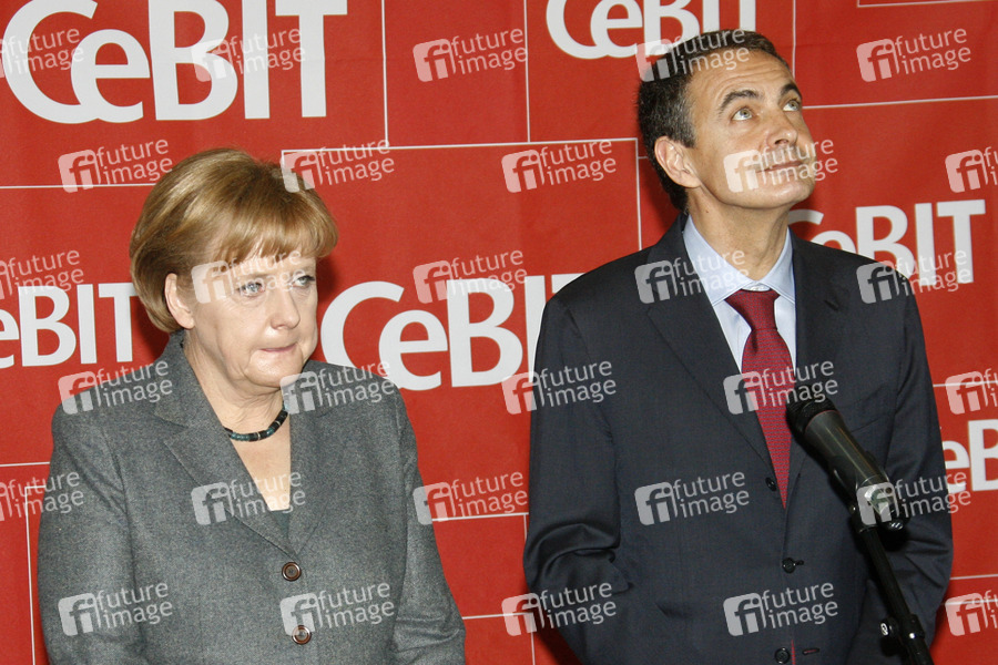 Eröffnungsrundgang von Bundeskanzlerin Merkel und Spaniens Ministerpräsident Zapatero auf der CeBIT 2010 (Centrum der Büro- und Informationstechnik), der weltgrößten Messe für Informations- und Computertechnik auf dem Messegelände in Hannover.