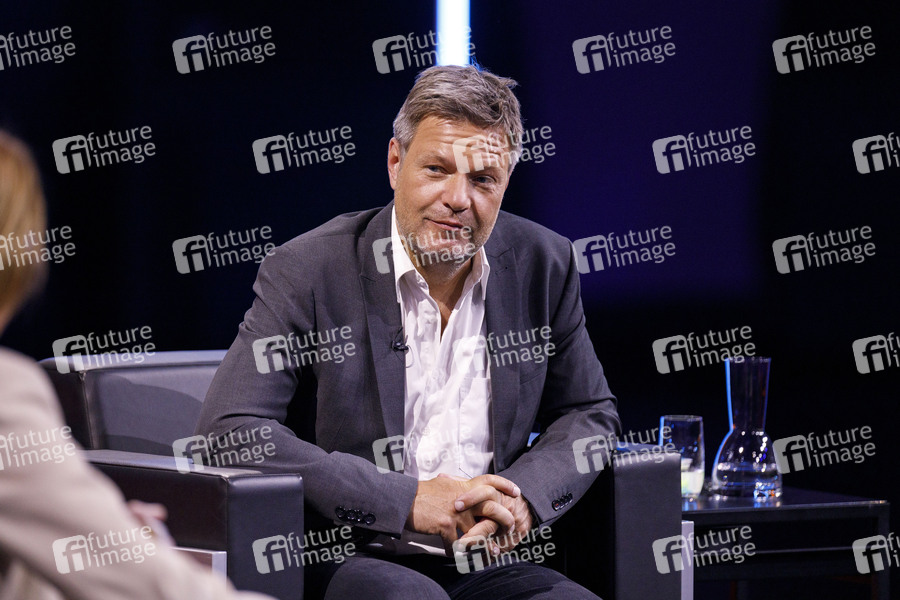 Robert Habeck bei der lit.Cologne Veranstaltung 'Robert Habeck fordert: Von hier an anders' als Stream aus dem Theater am Tanzbrunnen. Die lit.Cologne 2021 findet wegen der Corona-Pandemie als digitales Event mit Streams statt. Köln, 1.6.2021