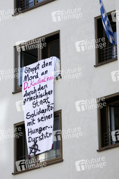 Besetzung des Griechischen Konsulats in Berlin Mitte in Solidarität mit Dimitris Koufontinas. In das griechische Konsulat in der Mohrenstraße sind etwa zehn Menschen eingedrungen und wollten das Gebäude nicht freiwillig verlassen.. Dimitris Koufontinas befindet sich seit 48 Tagen im Hungerstreik und den 3. Tag im Durststreik. Er ist seit 18 Jahren als Mitglied der revolutionären Organisation 17. November in Gefangenschaft und hat die politische Verantwortung für die Gruppe und ihre Taten übernommen. Berlin, 24.02.2021