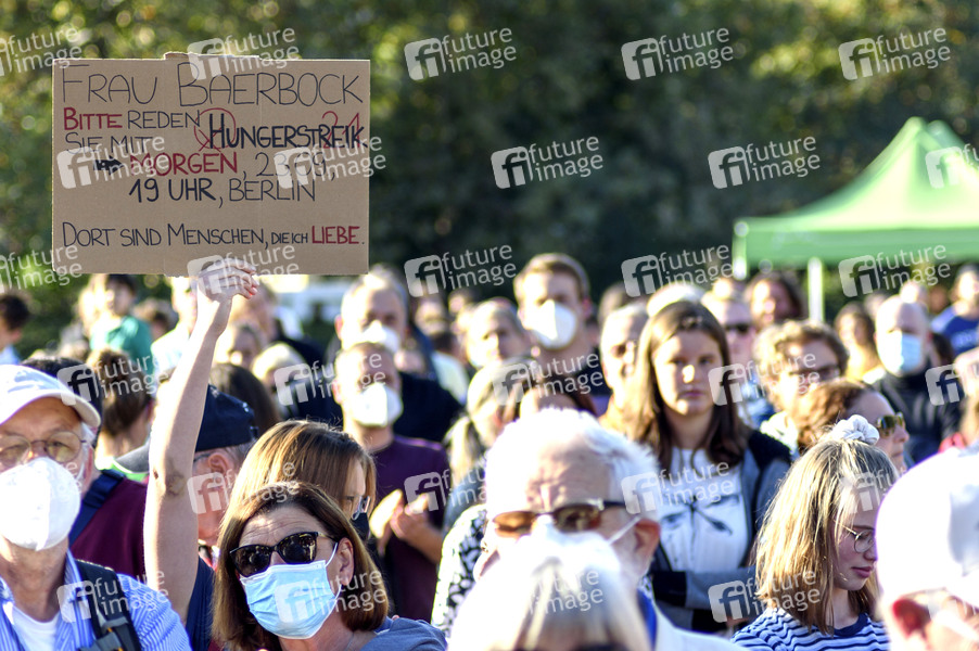 Demonstranten und Veranstaltungsbesucher bei einer Wahlkampfveranstaltung der Grünen auf der Talavera. Würzburg 22.09.2021