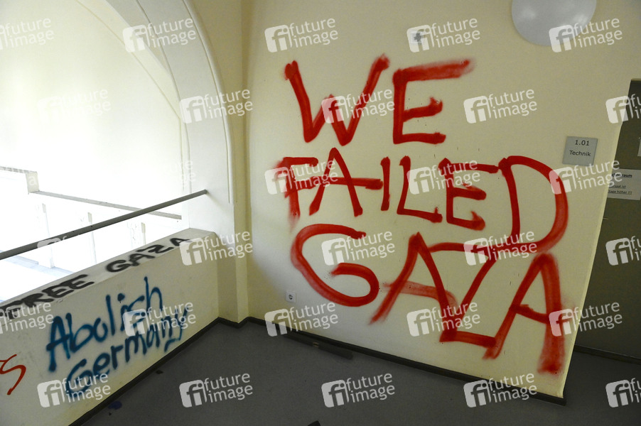 Politik, Demokratie, Protest, Zerstörung, Antisemitismus, Extremismus, Gaza-Konflikt, Hamas, Konflikt, Nahostkonflikt, Palästina, Palästinakonflikt, Terror, zerstörte Sitze, beschmierte Wände, Hass