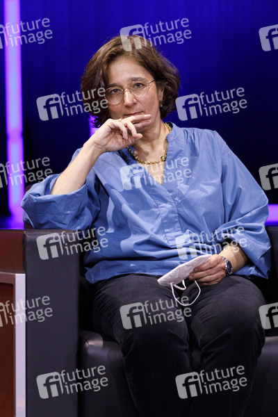 Isabel Schayani bei der lit.Cologne Veranstaltung 'Moria - und wie weiter?' als Stream aus dem Theater am Tanzbrunnen. Die lit.Cologne 2021 findet wegen der Corona-Pandemie als digitales Event mit Streams statt. Köln, 31.05.2021
