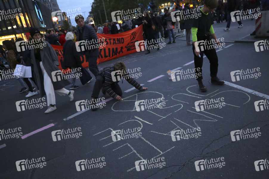 Aktivisten der Klimabewegung 'Extinction Rebellion' blockieren den Kurfürstendamm. Berlin, 09.10.2019