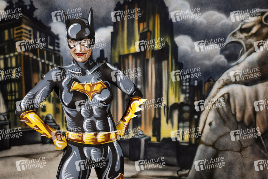 Projekt Farbkörper, Cosplay, Cosplayer, Bodypainting, Body-Painting, Make-up, Latexappliaktionen, Latexteile, Maskenbildnerei, Maskenbildner Körperkunst, Körperfarben, Farbe, Bemalung, Kunst, Malerei, Superheld, Superheldin, Comics, Comicfigur, Comicheft, DC, Batwoman, Batman, body painting, body art, superhero, super heroine, project color body, colors, colours, comic book