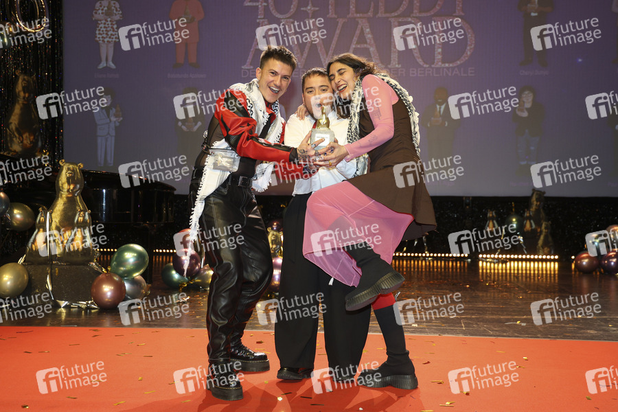 Ian de la Rosa mit Team bei der Verleihung des 40. Teddy Award 2026 auf der Berlinale 2026 / 76. Internationale Filmfestspiele Berlin in der Volksbühne. Berlin, 20.02.2026