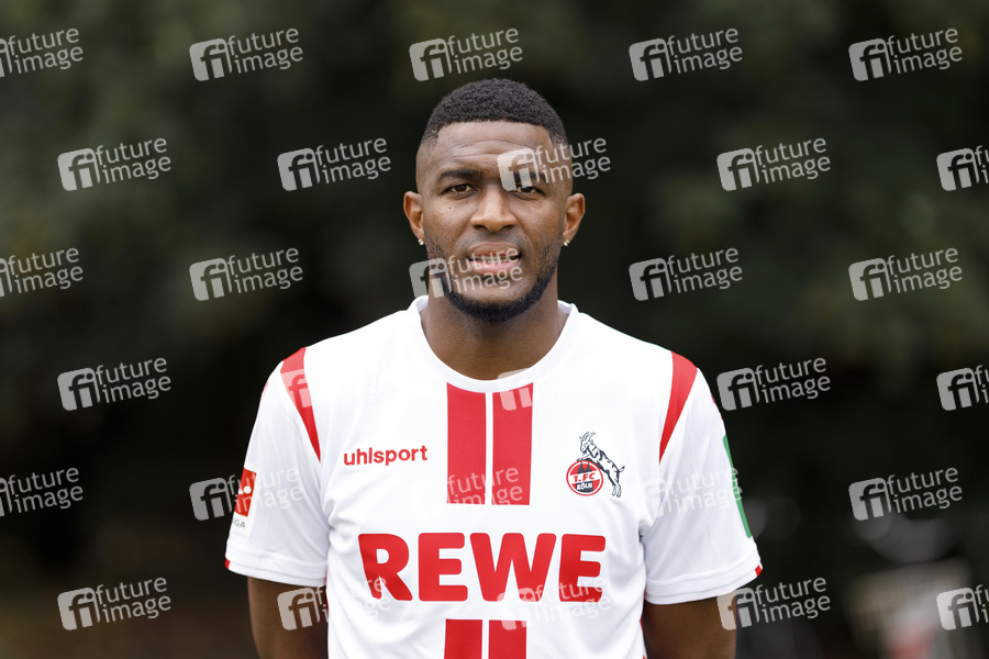 Anthony Modeste beim Fototermin im Rahmen des Media Day des 1. FC Köln mit den neuen Trikots in der Saison 2020/2021 am Geißbockheim. Köln, 14.08.2020