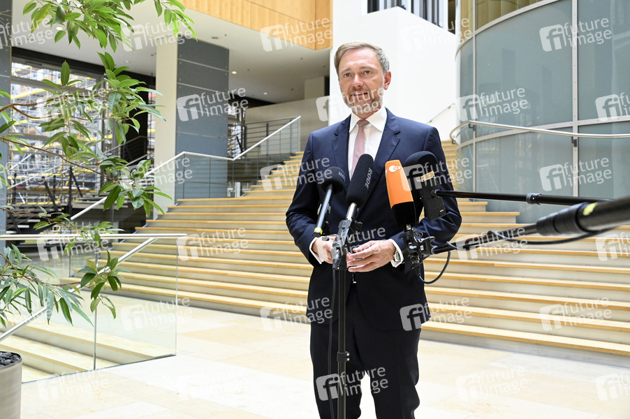 Christian Lindner beim Statement zur Ministerpräsidentenkonferenz im Jakob-Kaiser-Haus. Berlin, 10.08.2021