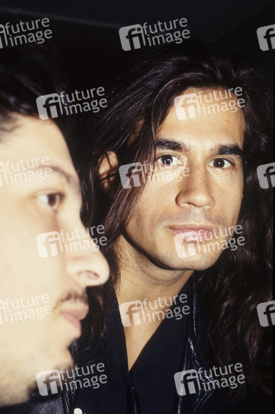 Dave Lombardo von Slayer und Reed St. Mark von Mind Funk Backstage im Hammersmith Odeon. London, 05.11.1991