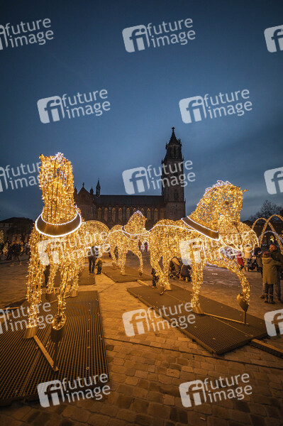 Lichterwelt auf dem Domplatz - Die Licherwelt Magdeburg mit der umfangreichste Weihnachts- und Winterbeleuchtung in Mitteldeutschland verteilt über die ganze Stadt. Magdeburg, 27.11.2022