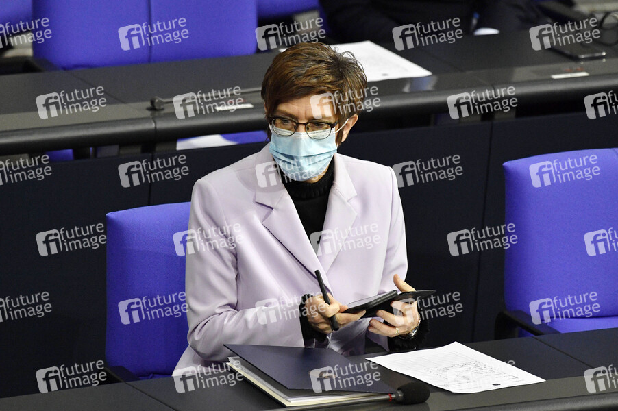 Annegret Kramp-Karrenbauer in der 215. Sitzung des Deutschen Bundestages im Reichstagsgebäude. Berlin, 04.03.2021