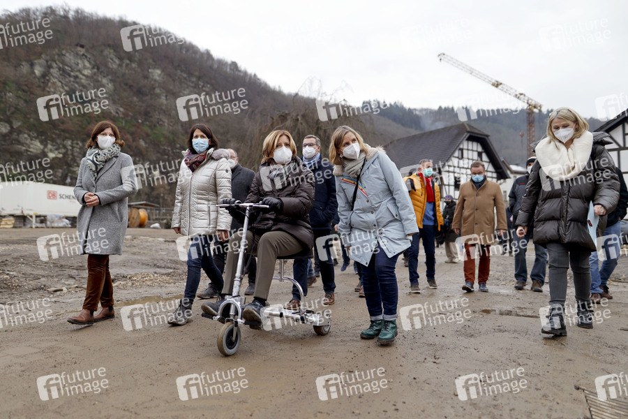 Daniela Schmitt, Malu Dreyer und Katrin Eder besuchen sechs Monate nach der Jahrhundertflut das Ahrtal, um Bestandsaufnahme in der Ortsgemeinde Schuld zu machen. Schuld, 12.01.2022