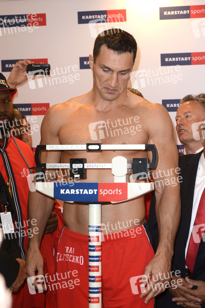 Wladimir Klitschko beim Einwiegen anlässlich des WM-Boxkampfs Wladimir Klitschko vs Alex Leapai in den Karstadt Arkaden vom Rhein-Ruhr Zentrum. Mülheim an der Ruhr, 25.04.2014