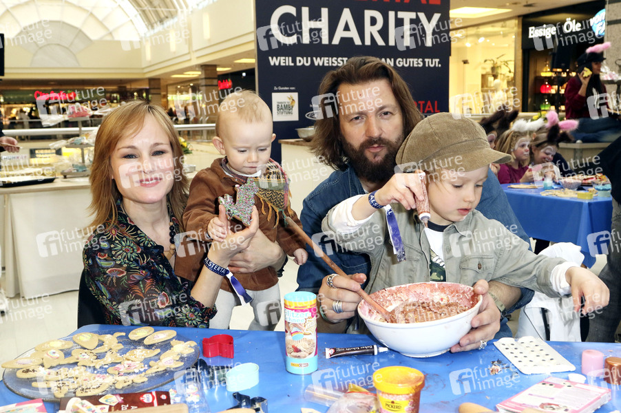 Dorkas Kiefer mit Ehemann Sascha Alexander Hauck, Sohn Sam und Tochter Emmi beim Promi-Osterbacken zugunsten der Tribute to Bambi Stiftung im Alstertal-Einkaufszentrum. Hamburg, 28.03.2019