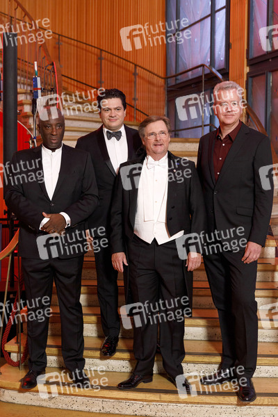 Wayne Marshall (Dirigent WDR Funkhausorchester), Cristian Macelaru (Dirigent WDR Sinfonieorchester), Stefan Parkman (Dirigent WDR Rundfunkchor) und Ansgar Striepens (Dirigent WDR Big Band) bei der Eröffnung der WDR Konzertsaison 2019/2020 im WDR Funkhaus am Wallrafplatz. Köln, 30.08.2019