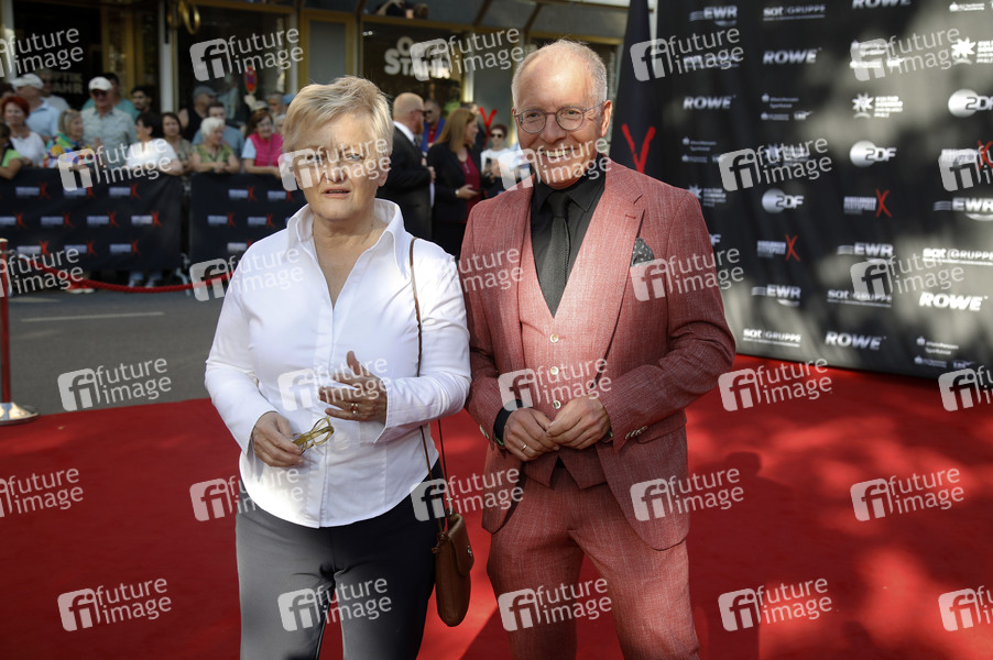 Renate Künast und Kai Gniffke bei der Premiere des Stücks 'See aus Asche - Das Lied der Nibelungen' der Nibelungen-Festspiele 2025 auf der Open-Air-Bühne vor dem Wormser Dom. Worms, 11.07.2025