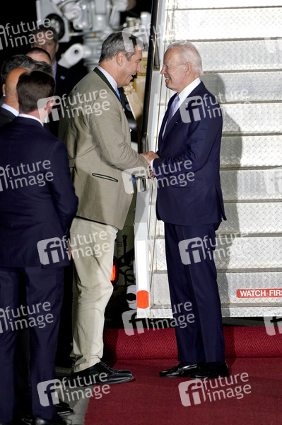 Markus Söder und Joe Biden bei der Ankunft von US-Präsident Biden zum G7-Gipfel am Flughafen München Franz Josef Strauß. München, 25.06.2022