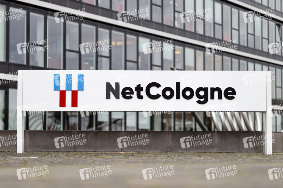Netcologne-Logo am Eingang der Netcologne GmbH in Ossendorf. (Themenbild, Symbolbild) Köln, 23.10.2021