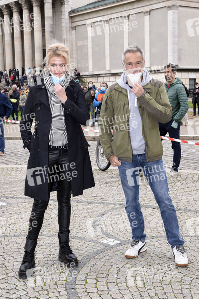Ursula Gottwald und Hannes Jaenicke bei der Kundgebung 'Aufstehen für Kultur' auf dem Königsplatz. München, 24.10.2020