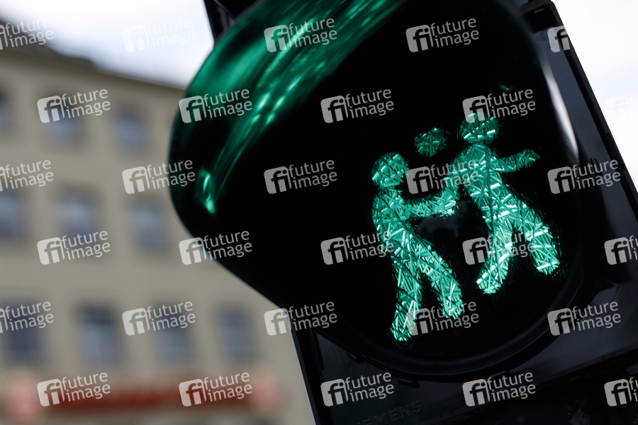 Verkehr, Lichtzeichenanlage, Fußgänger, Füßgängerampel, Fußgängersignal, Rotphase, Grünphase, Ampelmännchen, Ampelfrauen, Ampelmänner, Ampelweibchen, gleichgeschlechtliche Ampelmännchen, homosexuelle Ampelmännchen, Homo-Ampelmännchen, Schwule, Lesben, schwul, lesbisch, Gay, Gay Pride, Lesbian, queer, transsexuell, Trans, Cologne Pride, Lesbe, Schwuler, Bisexuelle, Transgender, Intersexuelle, Homosexuelle, hetero, bisexuell, Toleranz, Gleichberechtigung, Ehe für alle, Gleichgeschlechtliche Ehe, Homo-Ehe, gegen Diskriminierung und Ausgrenzung, Bewegung, Politik, Kultur, Solidarität, Akzeptanz, Lesben- und Schwulenbewegung, Paragraph 175, bisexual, Homosexualität, Gays, Schwulenhauptstadt, Homo-Hauptstadt, Gay Community, Transvestit, Transvestiten, Coming-Out, sexuelle Orientierung, Homosexuelle, Transsexuelle, Transgender, Intersexuelle, Bisexuelle, Homoehe, Homophobie, CSD, LGBT, LGBTI, GLBT, LSBTTIQ, gleichgeschlechtlich, Liebe, Sexualität, gleichgeschlechtliche Liebe, Outing, Coming Out, Symbolbild, Symbolfoto