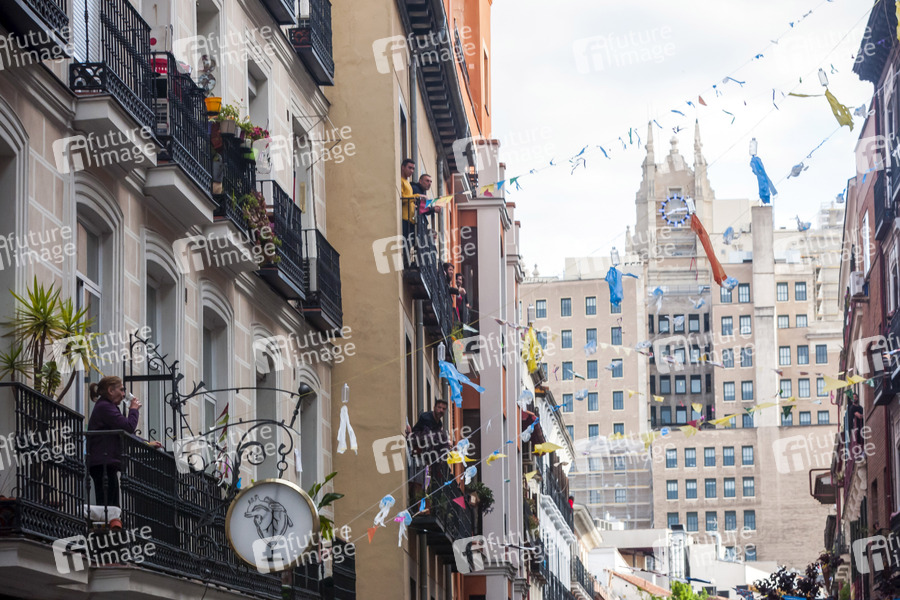 Die Bewohner des angesagten, studentenfreundlichen Viertels Malasana feiern am 47. Tag seit Verhängung des Ausnahmezustands durch die spanische Regierung wegen der Coronakrise. Madrid, 30.04.2020
