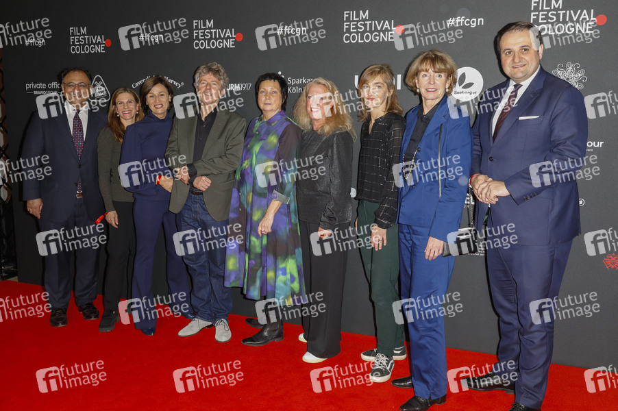 Walid Nakschbandi, Dr. Caroline Volkmann, Sandra Maischberger, Andres Veiel, Martina Richter, Christiane Hinz, Mirjam Dolderer, Henriette Reker und Nathanael Liminski bei der Festivaleröffnung mit der Premiere des Dokumentarfilms 'Riefenstahl' auf dem 34.Film Festival Cologne 2024 im Filmpalast. Köln, 17.10.2024