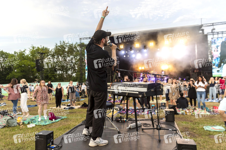 Jakob Amr von den Leoniden live beim Picknick Konzert auf der Zoopark Festwiese. Erfurt, 10.07.2021