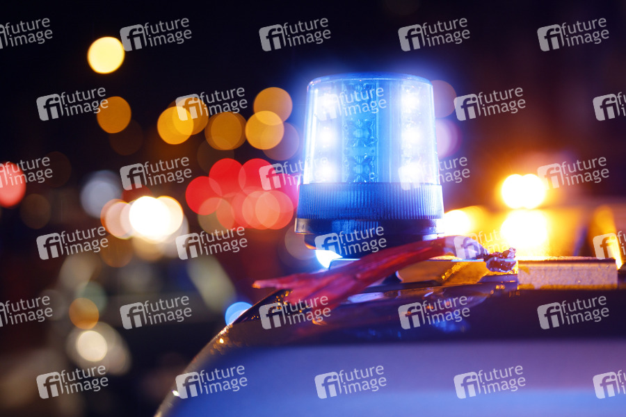 Blaulicht auf Polizeiwagen bei einem Autounfall in Sülz. Köln, 01.03.2020
