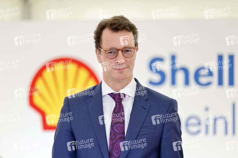 Politiker, CDU, Union, Ministerpräsident des Landes Nordrhein-Westfalen, NRW-Ministerpräsident, Auftritt, Shell, Industrie, Raffinerie, Royal Dutch Shell, Produktionsanlage, Gaskonzern, Gasindustrie, Ölindustrie, Ölkonzern, Treibstoff, Klimaziele, Förderung, Energiewende, Chemieindustrie, Kohlendioxid-Ausstoß, Gas, Erneuerbare Energien, Umweltschutz, Energietechnik, Umweltpolitik, Gaspreis, Gaspreise, Industriepolitik, Energiepolitik, Shell Energy, Chemicals Park Rheinland, CO2-neutral, Nachhaltigkeit, CO2-Neutralität, Biogas, Bio-Gas, Bio-LNG, flüssiges Gas, Biomethan, Methangas, Methan-Gas, Baustelle