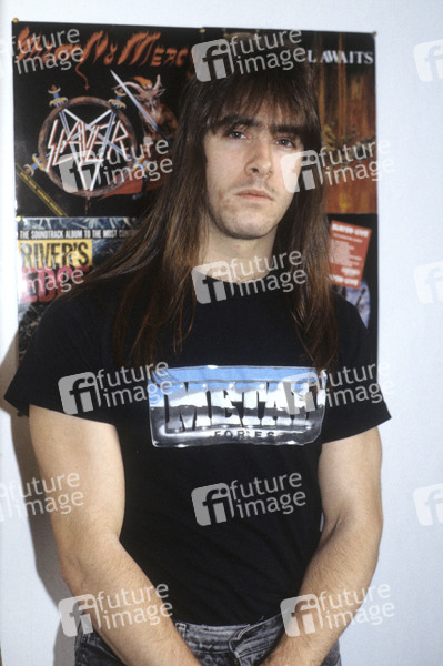 Jeff Waters von Annihilator bei einem Pressetermn im Roadrunner Records Office. London, 08.09.1990