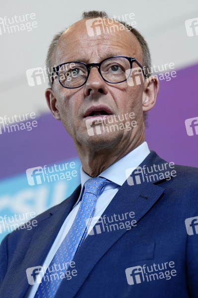 Friedrich Merz beim Pressestatement zur Fraktionssitzung der CDU/CSU-Bundestagsfraktion im Reichstagsgebäude. Berlin, 14.05.2024