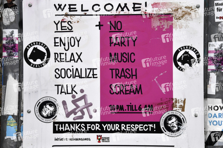 Hinweis auf die Corona-Regeln für den Weinbergspark am Weinbergsweg. (Themenbild, Symbolbild) Berlin, 09.01.2021