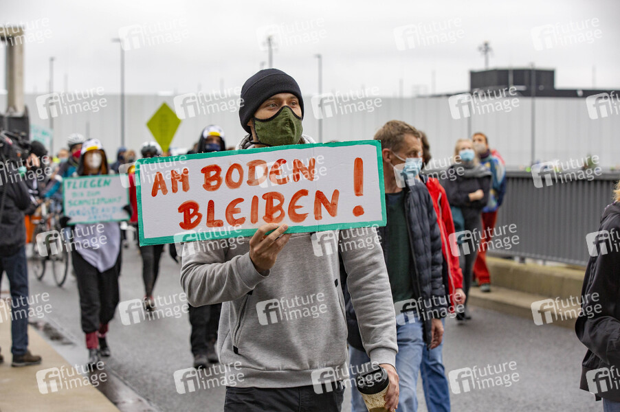 Protestaktionen von Mitgliedern des Bündnisses 'Am Boden bleiben' bei der Eröffnung des Flughafens Berlin-Brandenburg (BER). Schönefeld, 31.10.2020