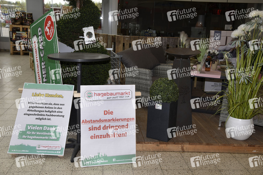 Öffnung der Gartencenter und Baumärkte nach der Lockerung der Corona-Maßnahmen in Bayern, hier der Hagebaumarkt im Gewerbegebiet in Brunnthal. Brunnthal, 20.04.2020