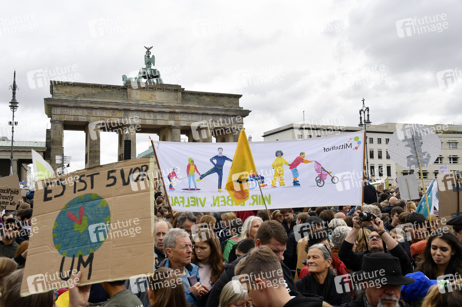 Demonstranten bei der 'Fridays for Future' Demonstration im Rahmen des weltweiten Klimastreiks am Brandenburger Tor. Berlin, 20.09.2019