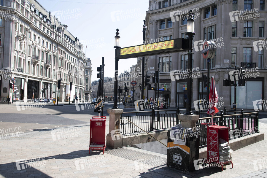 Oxford Circus - Londons Straßen und Touristenattraktionen sind aufgrund des Coronavirus Lockdown menschenleer. London, 05.05.2020