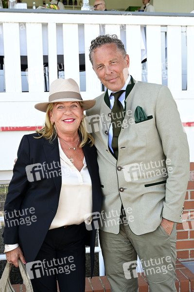 Kerstin Woltmann und Patrick Graf von Faber-Castell bei der Großen Saisoneröffnung 2025 auf der Rennbahn Hoppegarten. Berlin, 20.04.2025