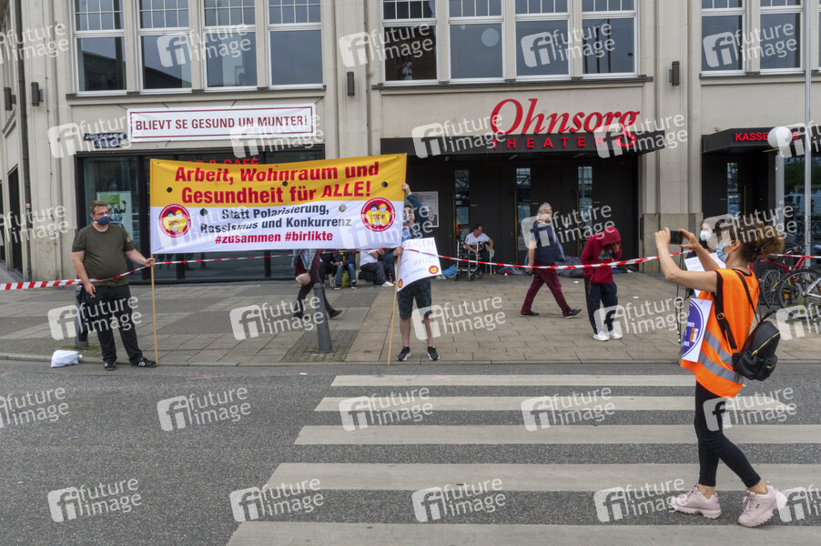Demonstration vom Bündnis 'Unteilbar' mit einer Menschenkette gegen Rassismus vom Rathaus bis zum Hauptbahnhof. Hamburg, 14.06.2020