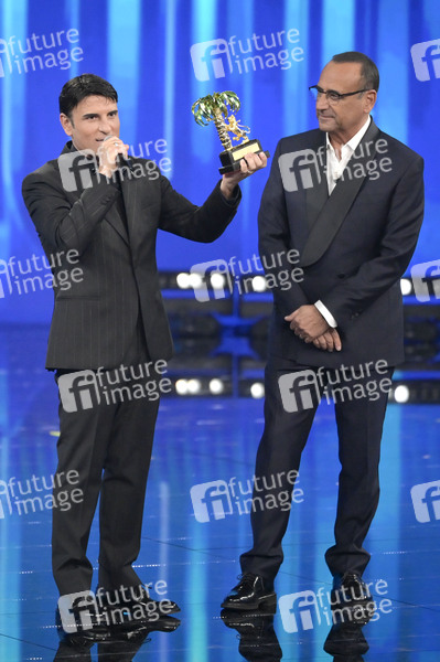 Sal Da Vinci und Carlo Conti in der Rai TV-Show 'Sanremo Top' in den Studi Televisivi Fabrizio Frizzi. Rom, 07.03.2026