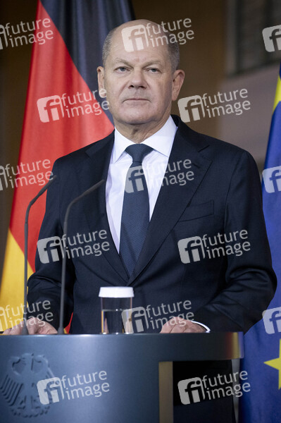 Olaf Scholz bei einem Pressestatement im Bundeskanzleramt, nachdem ein afghanischer Asylbewerber in München in eine Menschenmenge gefahren ist und viele Menschen verletzt hat. Berlin, 13.02.2025