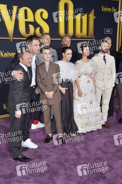 Rian Johnson, Michael Shannon, Jaeden Martell, Daniel Craig, Katherine Langford, Don Johnson, Ana de Armas, Chris Evans undnd Jamie Lee Curtis bei der Premiere des Kinofilms 'Knives Out - Ein Mord zum Dessert' im Regency Village Theatre. Los Angeles, 14.11.2019